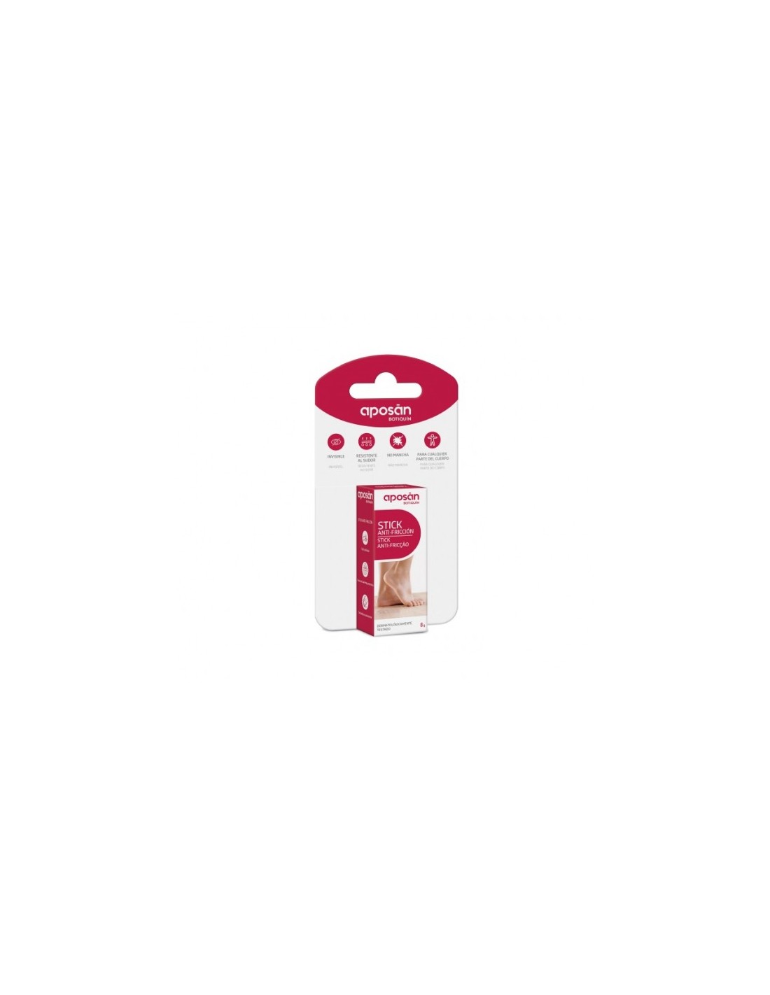 Aposan Stick Anti-fricción protege de las rozaduras en los pies causadas por el roce de los zapatos.