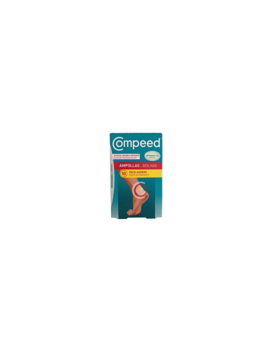 Compeed Ampollas Talla mediana 10 unidades Pack ahorro son apósitos hidrocoloides que alivian el dolor al instante y aceleran la curación de las ampollas.