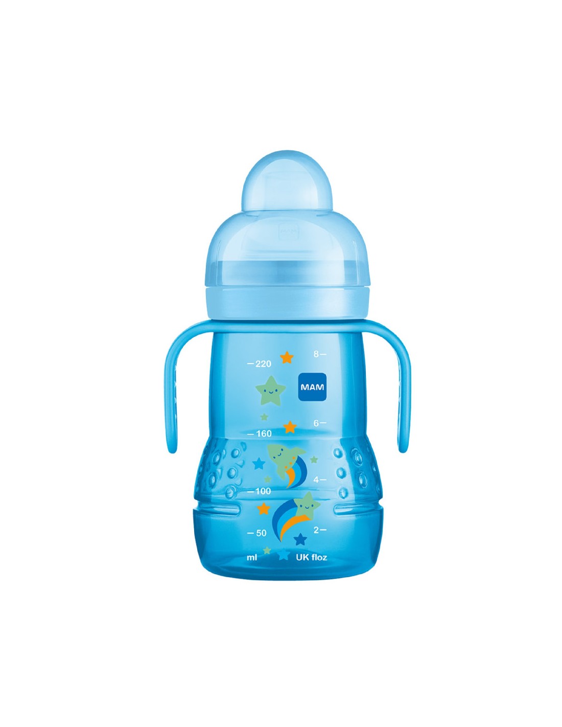 Mam biberon trainer 220 ml azul es un vaso de aprendiaje para los bebés a partir de 4 meses.