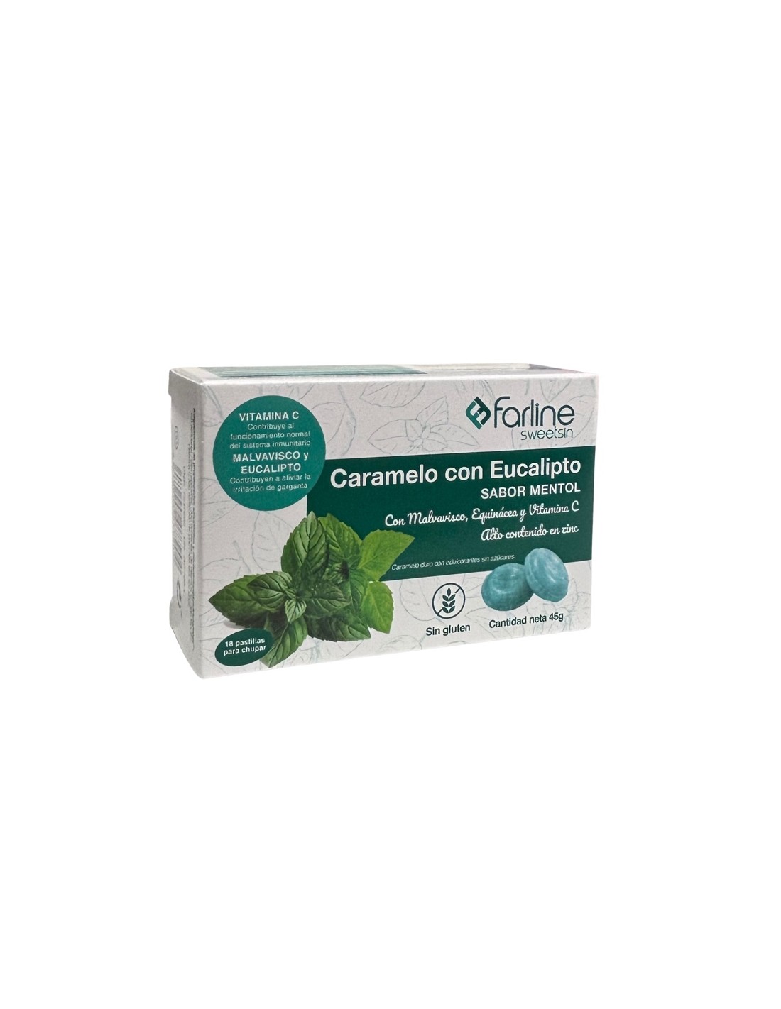 Farline Caramelos eucalipto, malvavisco, equinácea y vit C son caramelos sin azúcar sabor mentol-eucalipto que alivian la irritación de garganta y fortalecen el sistema inmunitario.