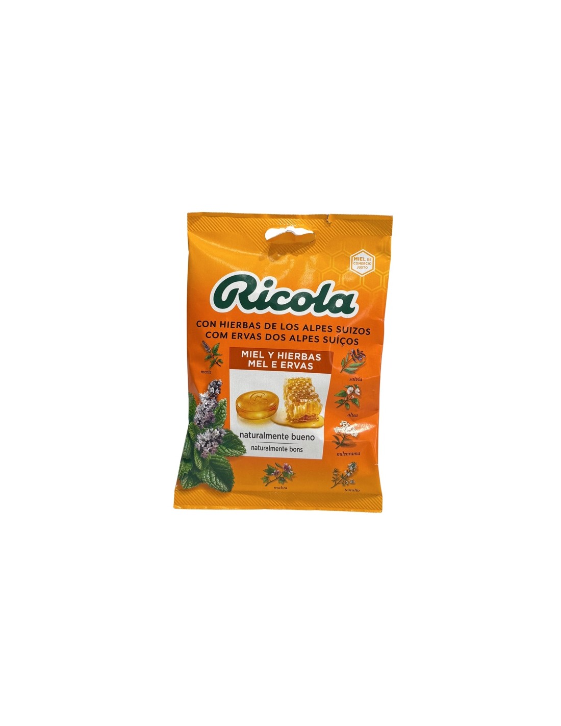Ricola caramelos Miel y hierbas bolsa 70g son caramelos sin azúcar que contienen hierbas cultivadas de forma natural en las montañas suizas.