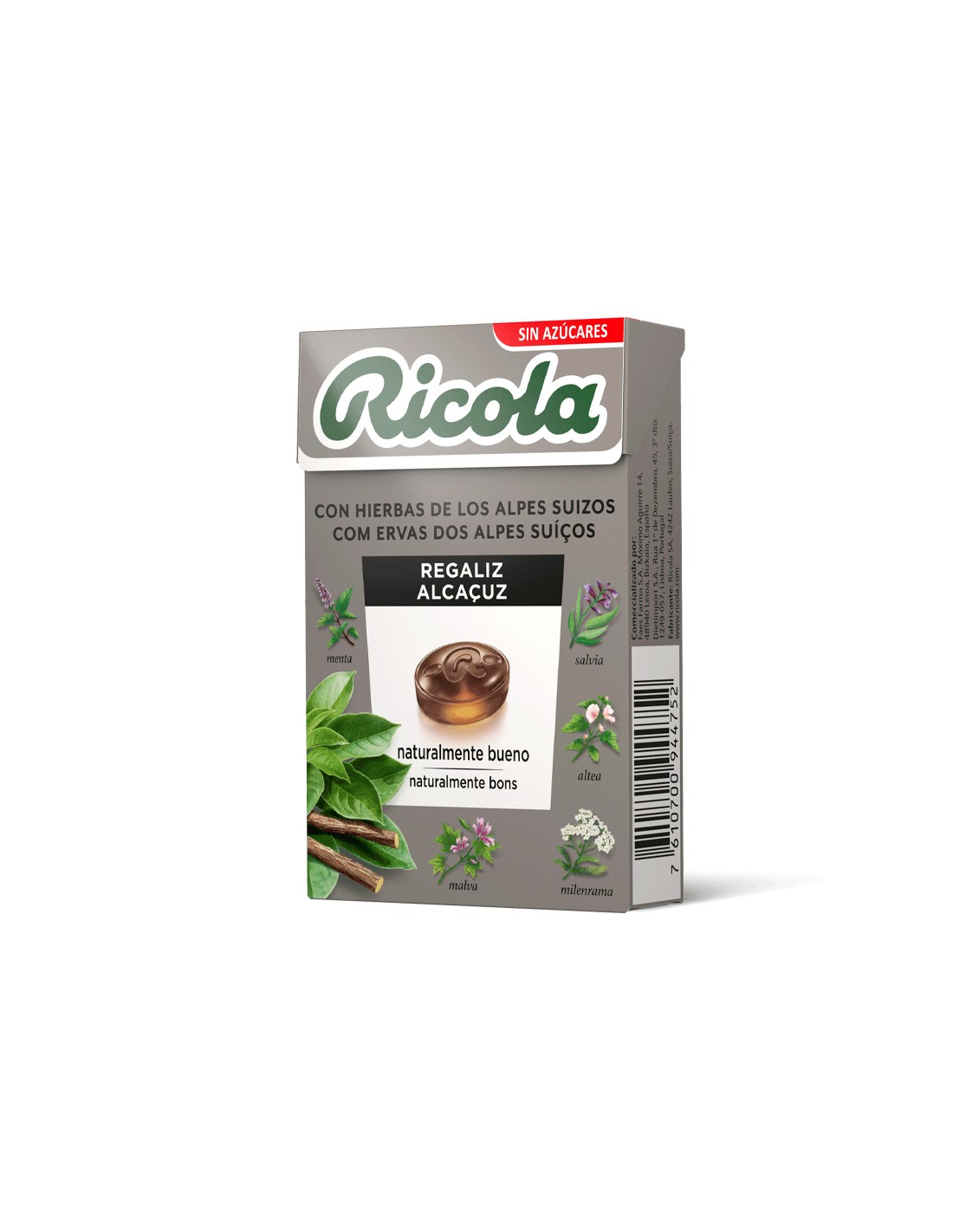 Ricola Caramelos sin azúcar Regaliz es una caja de caramelos sin azúcar elaborados a base de 13 hierbas suizas que proporcionan un suave efecto balsámico que refresca la garganta. Delicioso sabor a Regaliz.