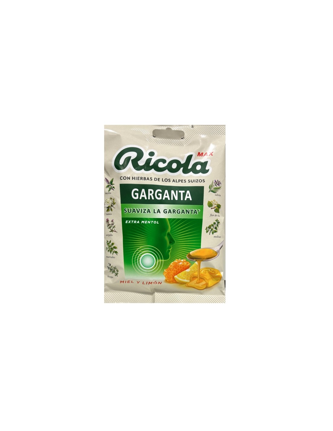 Ricola Max Garganta Caramelos bolsa Miel y limón son caramelos para la garganta con un extra de mentol.