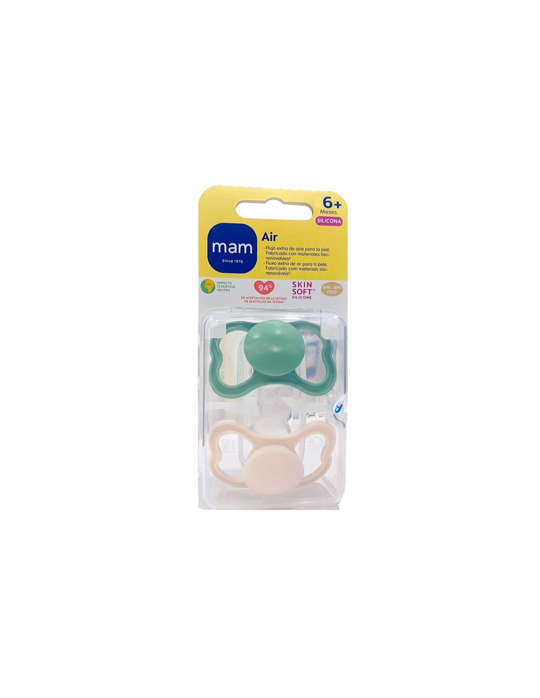 Mam Air 6+ Chupete silicona verde 2 unidades