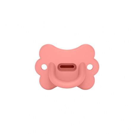 Este chupete ha sido concebido para respetar al máximo el desarrollo bucodental del bebé, minimizando el impacto en su crecimiento oral.