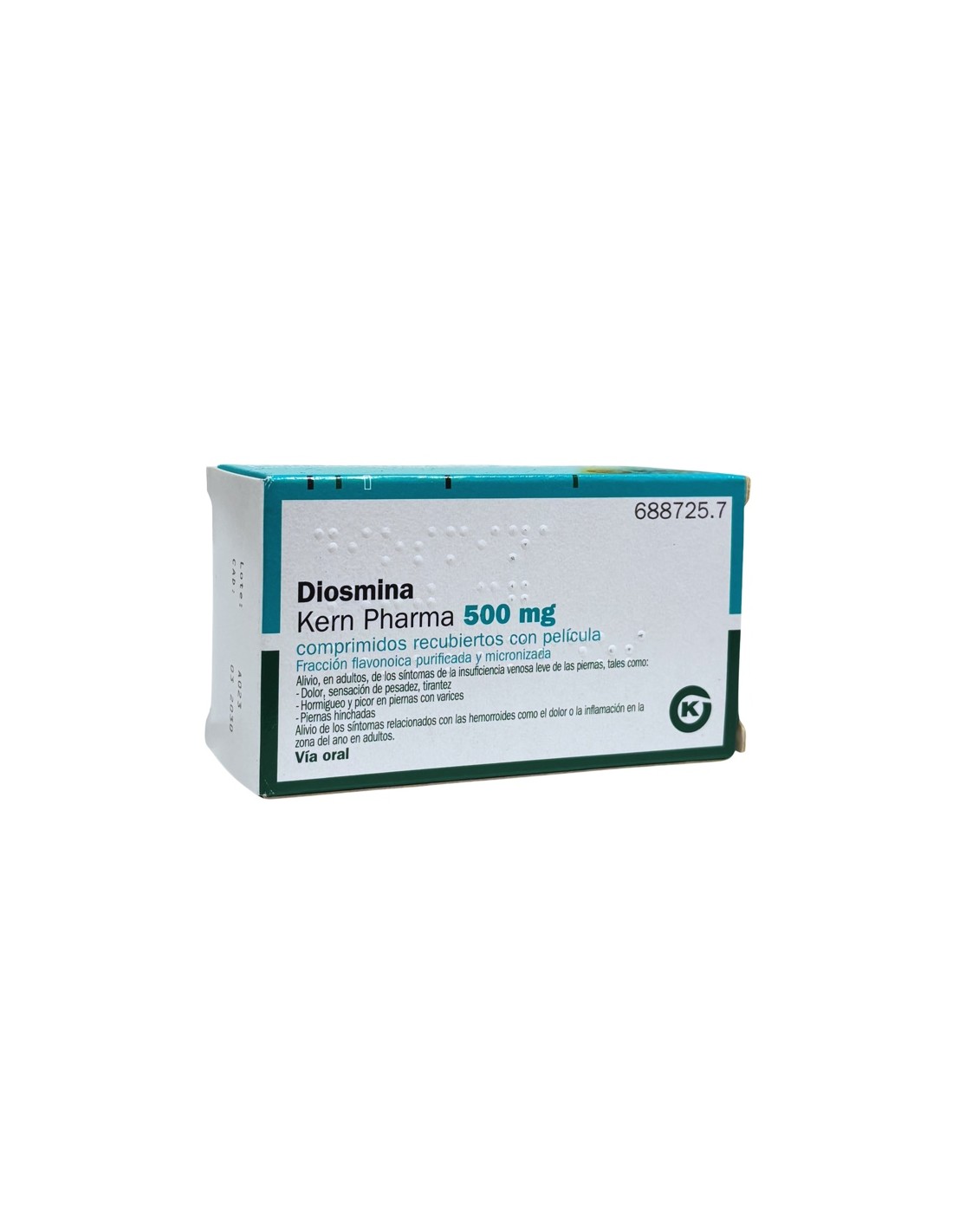 Diosmina Kern Pharma 500 mg 60 comprimidos es un medicamento venotónico: aumenta el tono de las venas y la resistencia de los capilares (pequeños vasos sanguíneos).