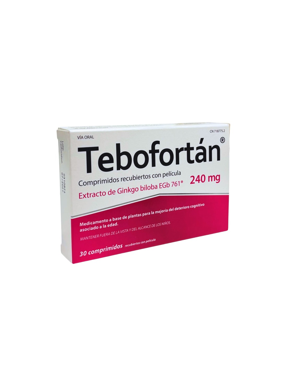 Tebofortán 240 mg 30 comprimidos es un medicamento sin receta a base de extracto de Ginkgo biloba EGb 761 indicado para la mejoría del deterioro cognitivo asociado a la edad.