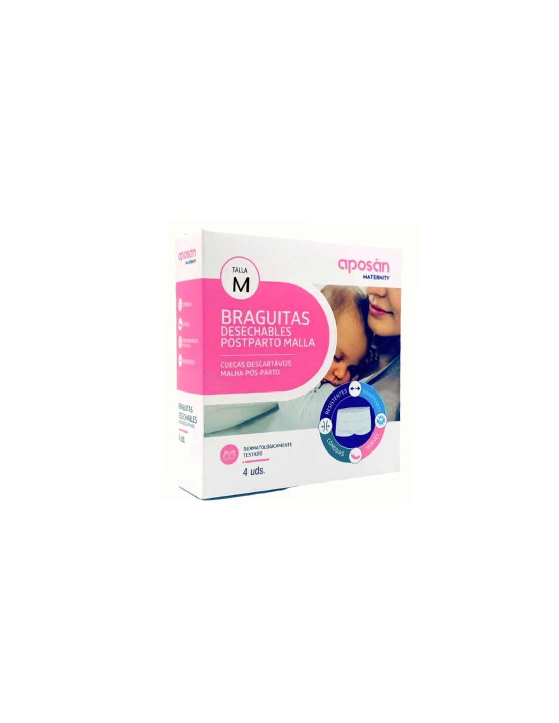 Aposan Bragas posparto desechables Maternity 4 unidades destinadas principalmente al puerperio, facilitan el soporte de las compresas posparto y las absorbentes.