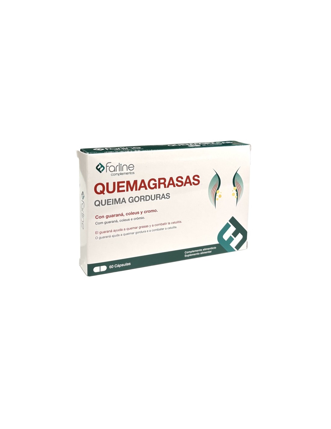 Farline Quemagrasas 60 cápsulas es un complemento alimenticio formulado con guaraná, coleus y cromo, seleccionados por su papel estimulante del metabolismo energético.