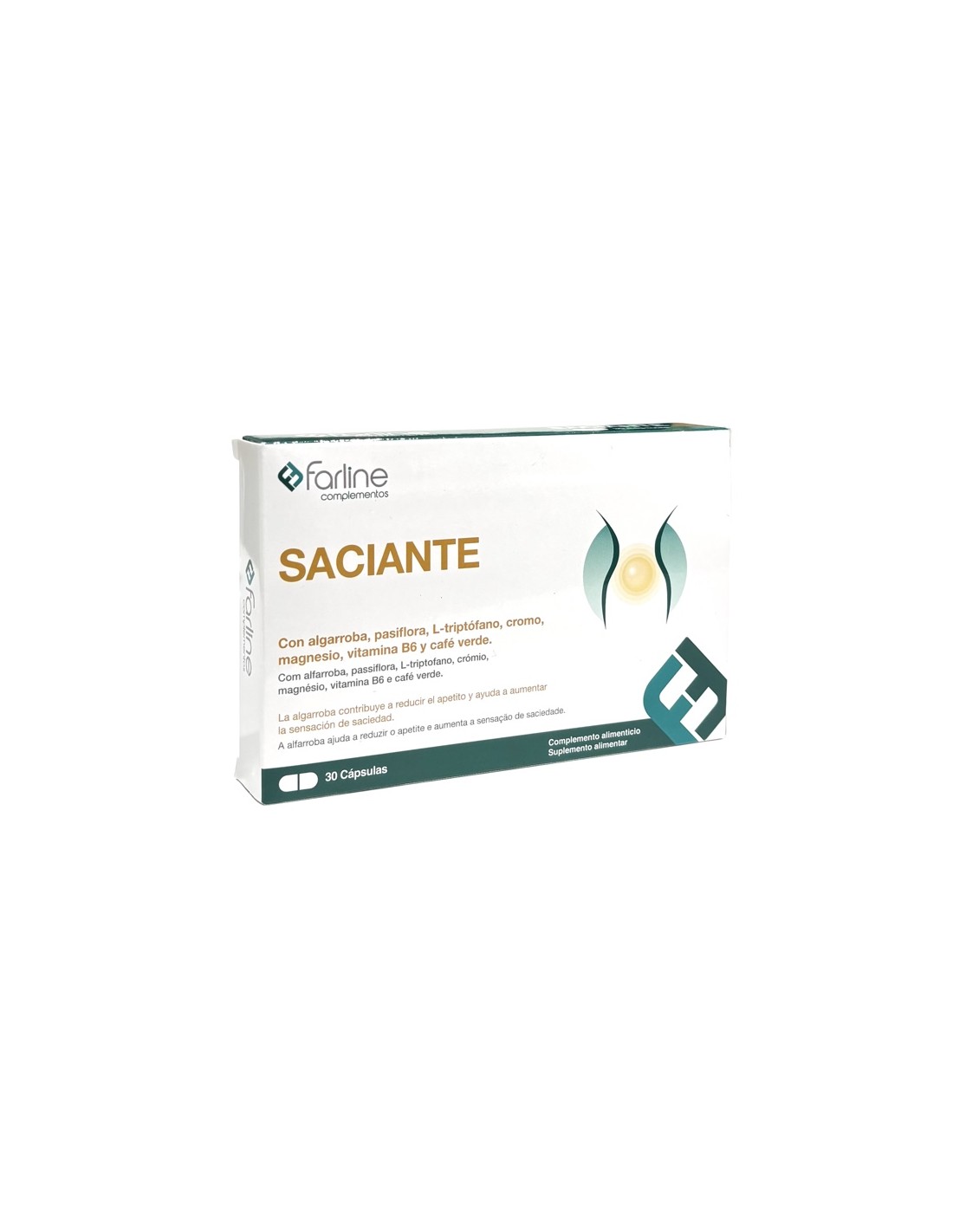 Farline Saciante 30 cápsulas es un complemento alimenticio formulado ca base de algarroba, pasiflora, L-triptófano, cromo, magnesio, vitamina B6 y café verde.