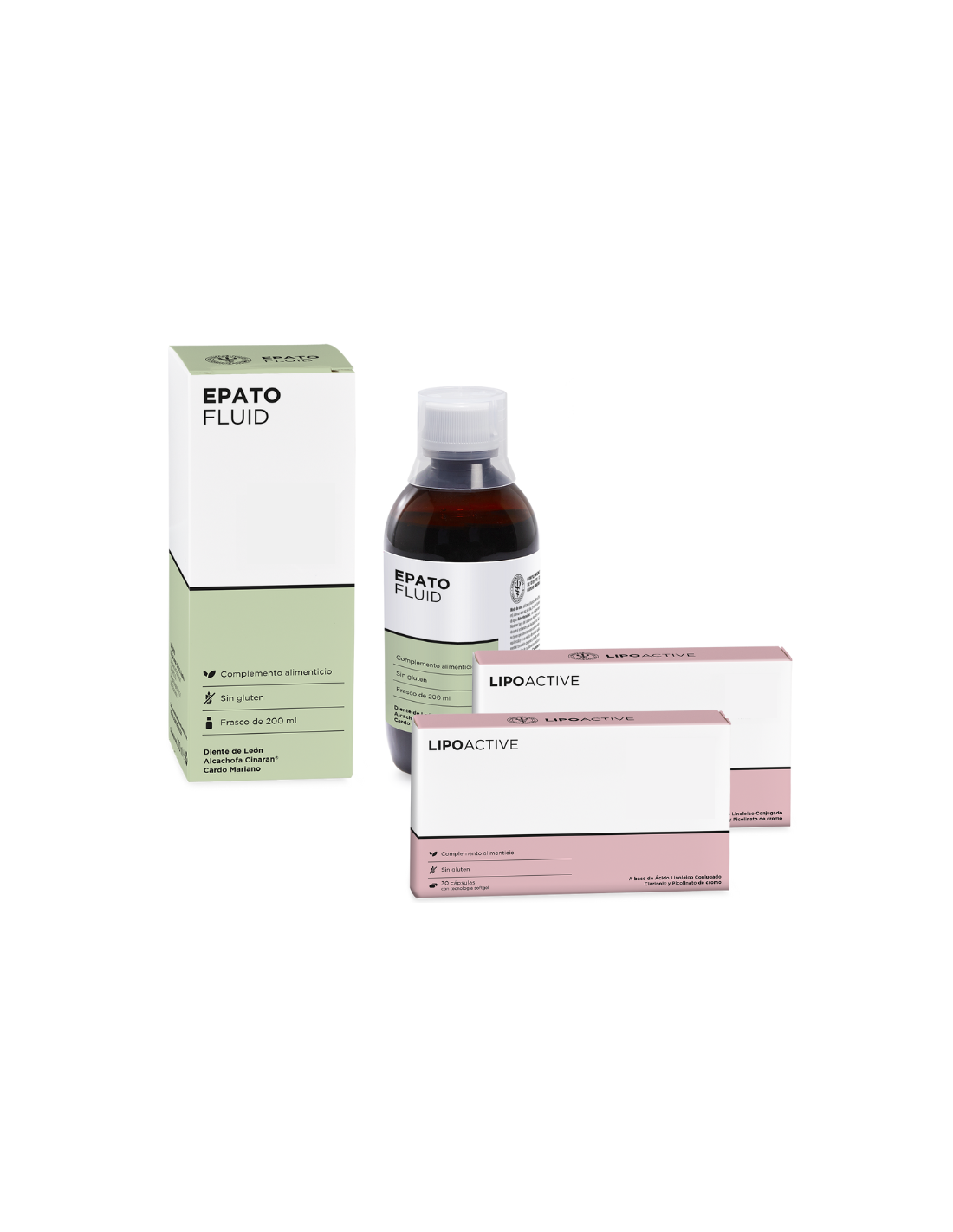 El Lipoactive te ayuda a reducir los depósitos de grasa localizada. El Epatofluid te ayuda a eliminar toxinas, tonifica hígado y vesícula para mejorar la digestión, reduciendo gases y pesadez.