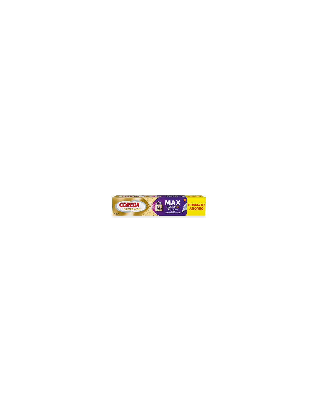 Corega máximo sellado es un adhesivo para protesis dental que favorece la fijación máxima de las dentaduras postizas.