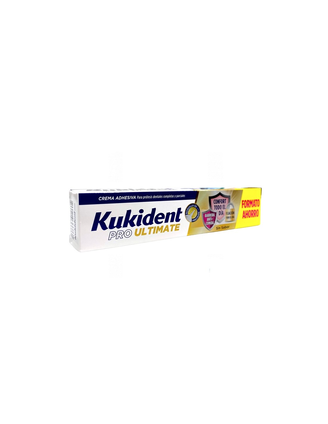 Kukident Pro Ultimate Barrera anticomida 57 g sin sabor es una crema adhesiva especialmente diseñada para prótesis dentales, ayudando a fijarlas de manera firme y cómoda.