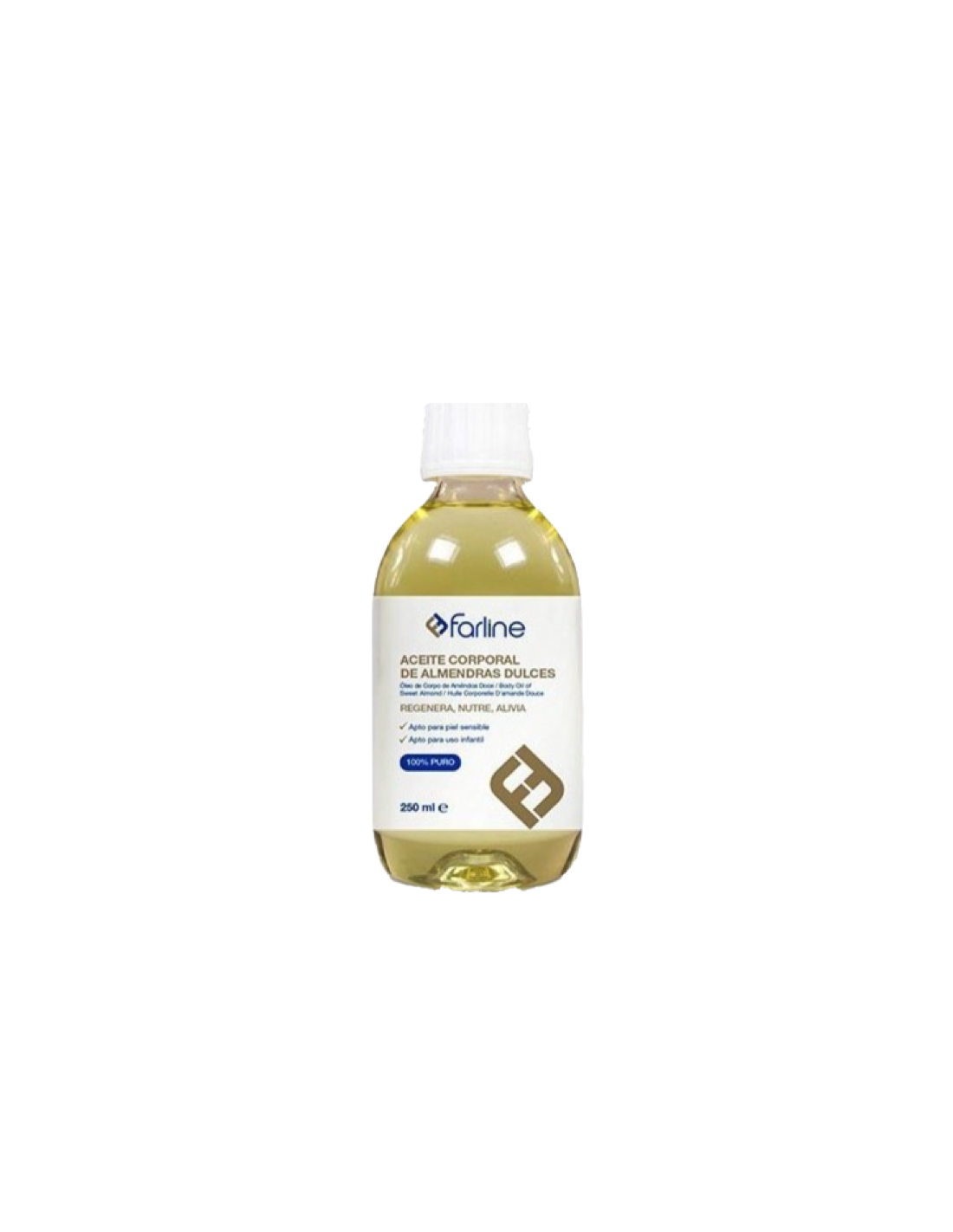 Farline Aceite Corporal Almendras Dulces 100% Puro Farline está especialmente indicado para hidratar y nutrir las pieles secas. De primera presión en frío.