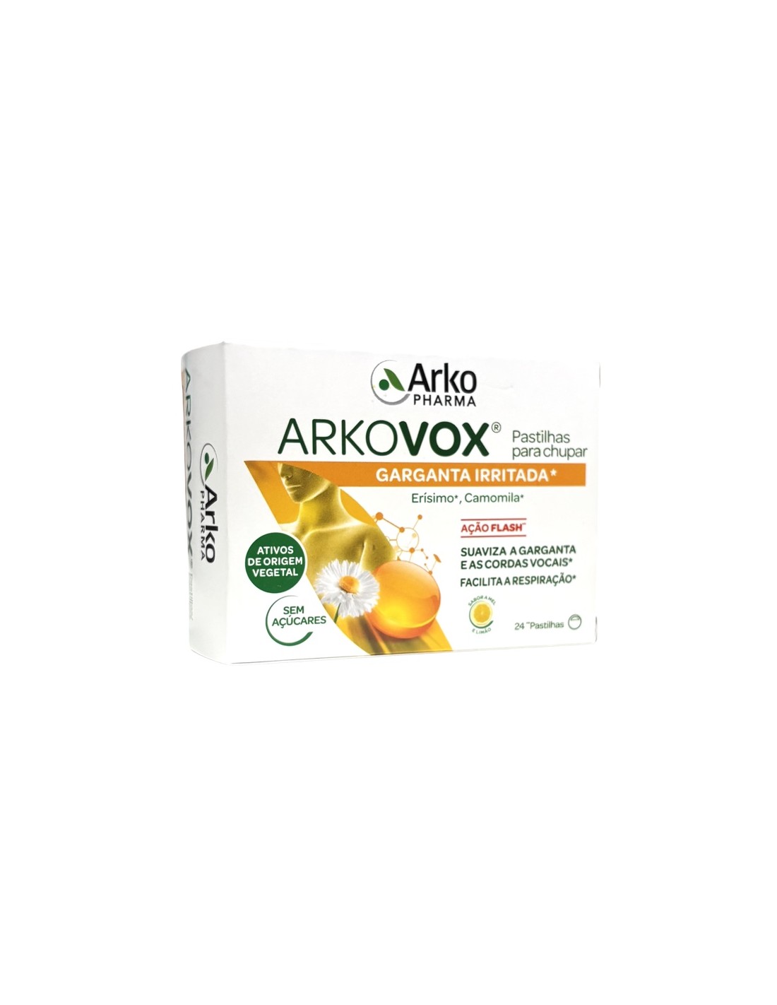 Arkovox Garganta Irritada Miel y Limón 24 pastillas está formulado a base de Erisimo y Manzanilla que alivian las molestias y el picor de las vías altas y cuerdas vocales.