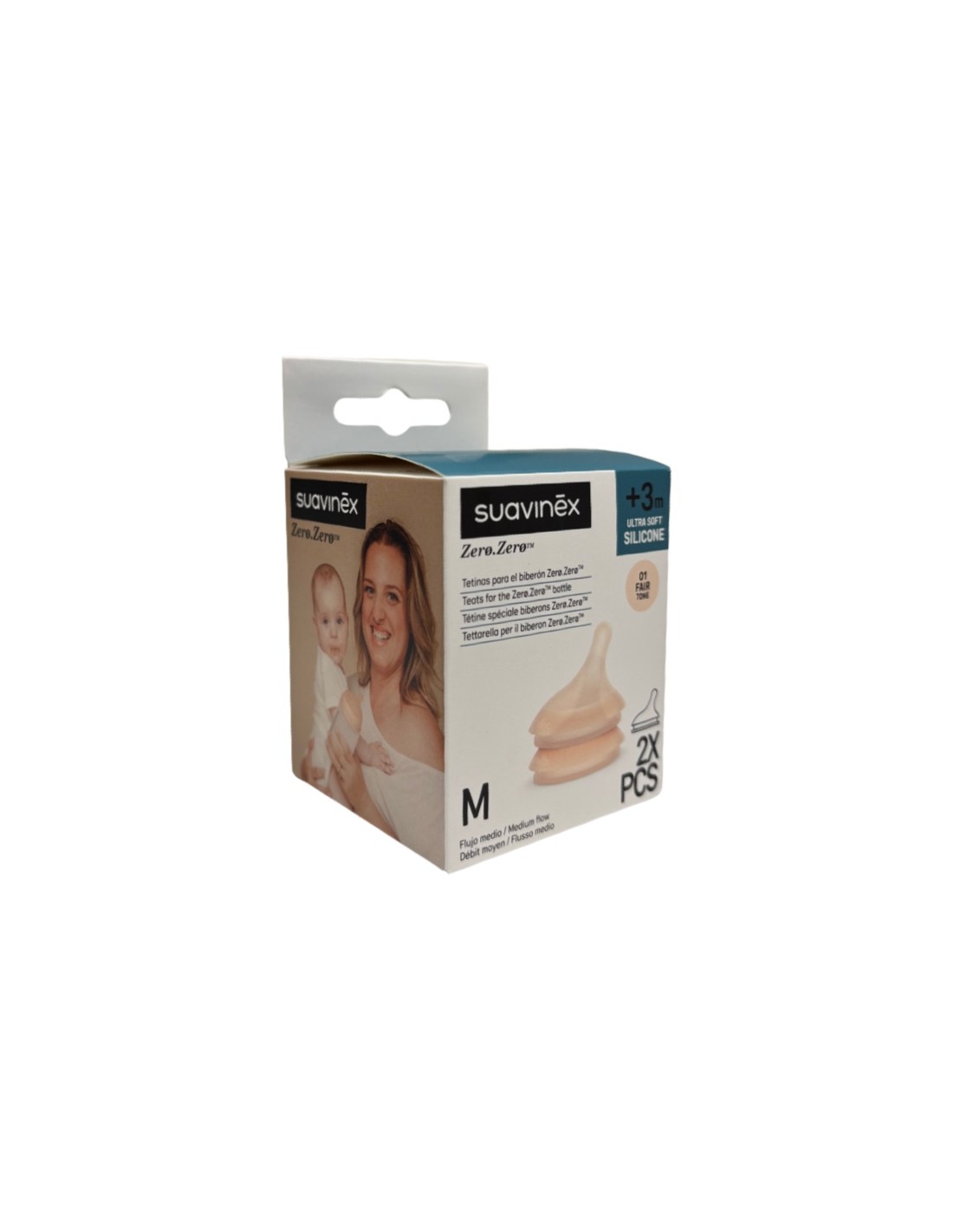Suavinex Tetina Silicona Zero Flujo medio +3 2U es una tetina ultra-suave de silicona que imita la forma, longitud y el tacto del pezón materno minimizando así la confusión tetina-pecho.