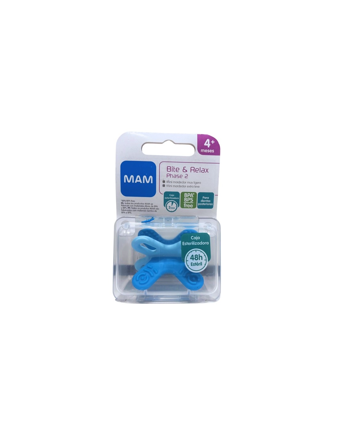 Mam Mordedor Mini Bite Relax phase 2 Azul con caja esterilizadora.
