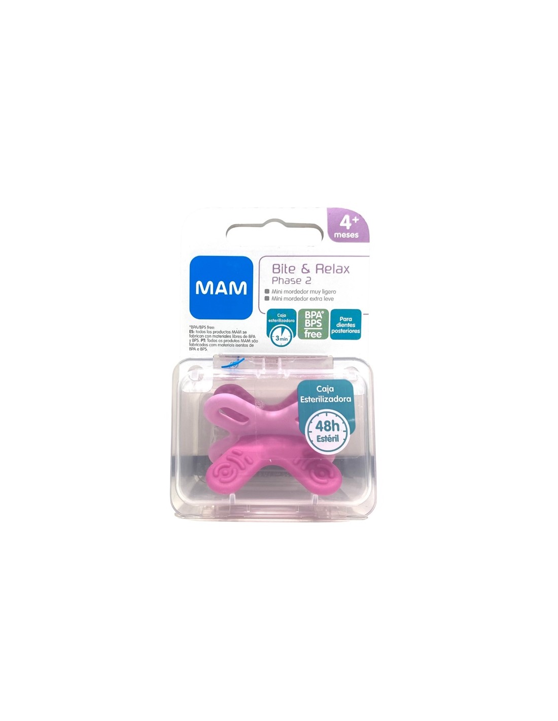 Mam Mordedor Mini Bite Relax phase 2 Rosa con caja esterilizadora.