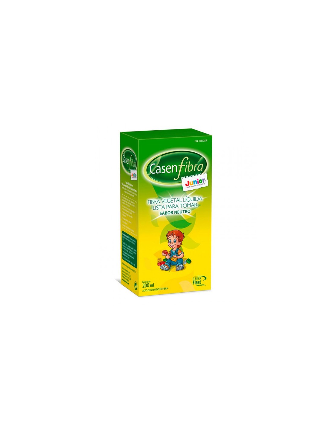 Casenfibra Junior Liquido botella 200 ml es fibra vegetal de origen natural. Contiene hasta 40 dosis (dosis recomendada 5-15 ml/día) de fibra de fácil dosificación y administración con jeringuilla.