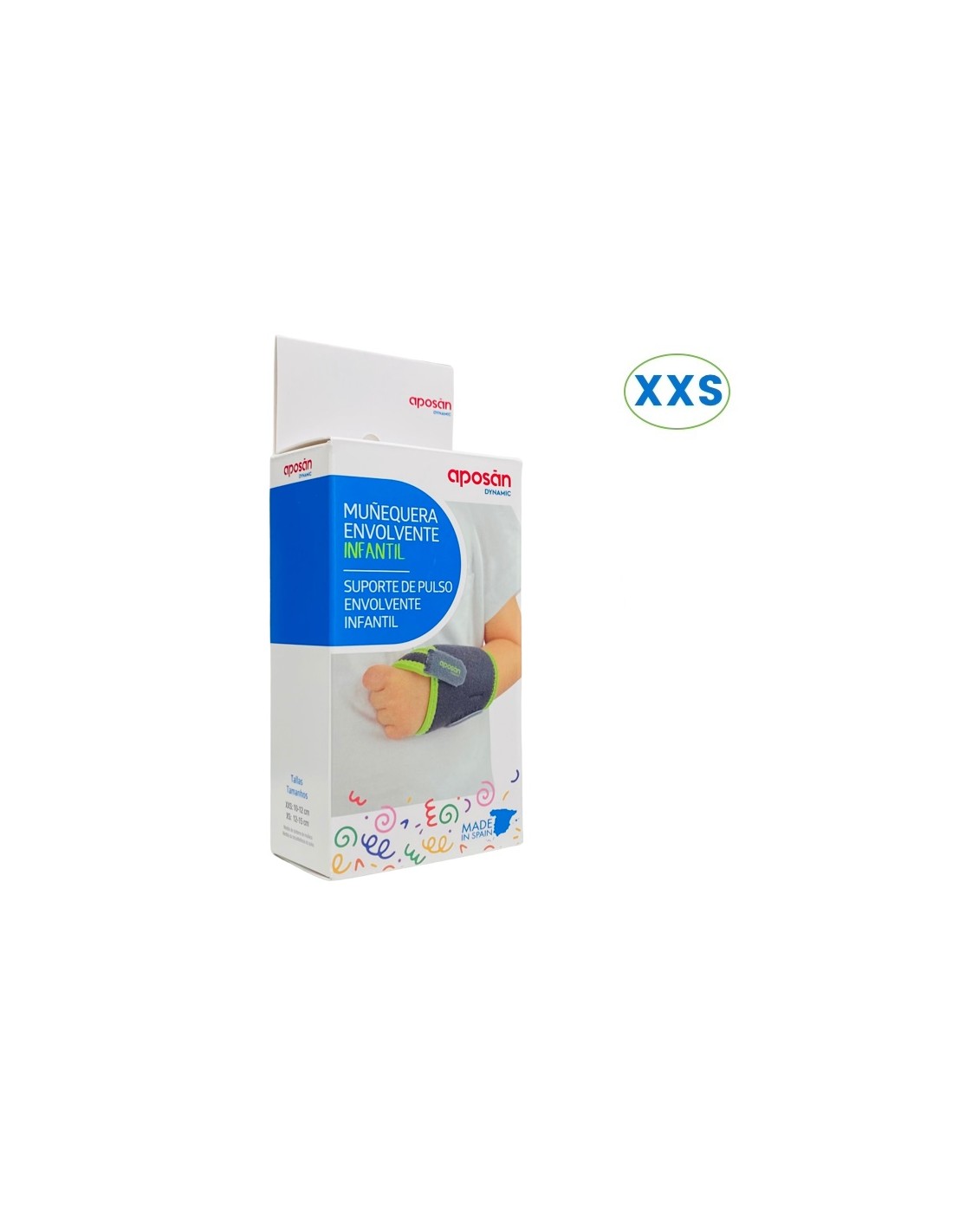 Aposan Muñequera envolvente infantil gris XXS está confeccionada con suave tejido elástico, transpirable y almohadillado.