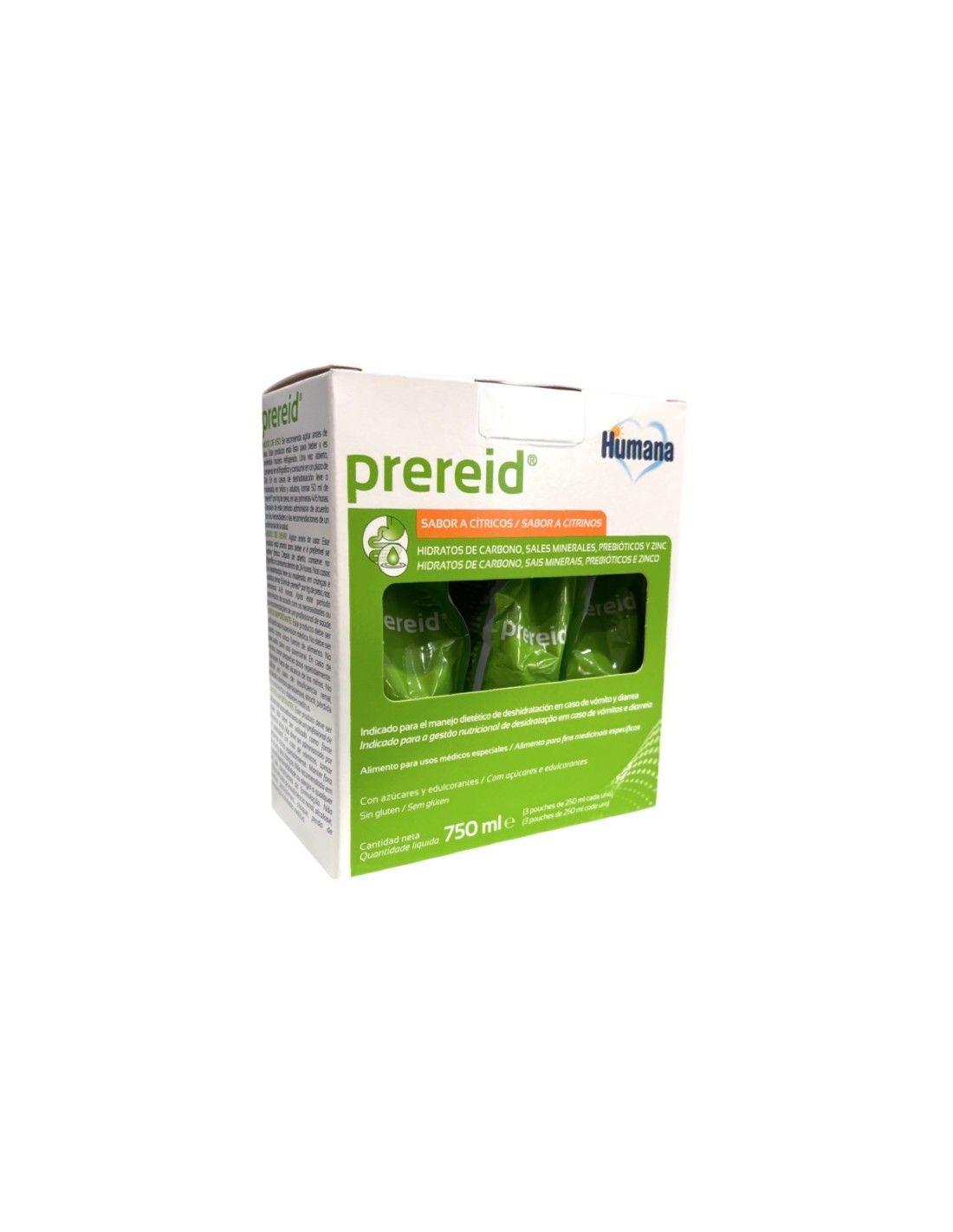 Prereid Electrolit líquido 3 envases 250 mL sabor cítrico está destinado para prevenir la deshidratación y reponer hidratos de carbono, sales minerales, fibras prebióticas y zinc.
