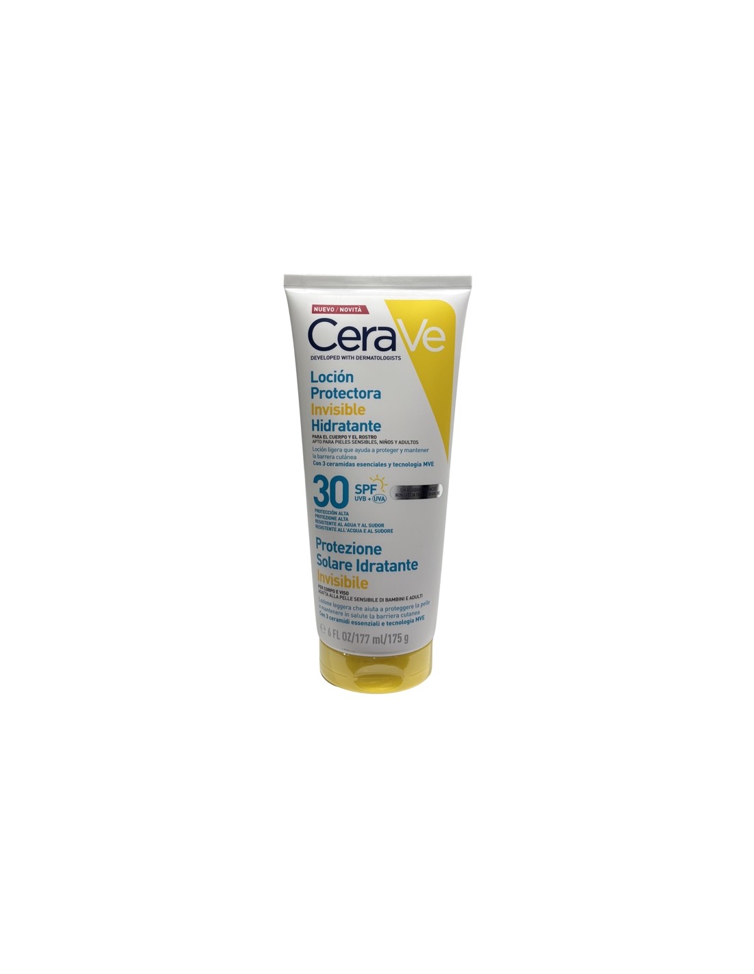 Cerave Loción invisible SPF30 177mL es una loción facial y corporal con protección solar de amplio espectro SPF 30 que hidrata y protege la piel frente a los rayos UVB y UVA en el uso diario.