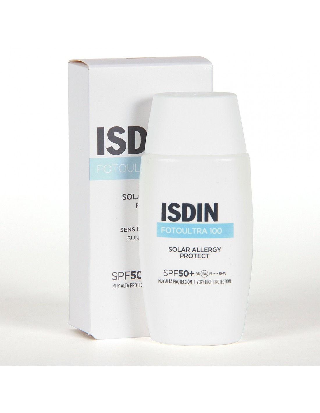 Isdin FotoUltra Solar Allergy Fusion Fluid está indicado para pieles altamente fotosensibles y es resistente al agua.