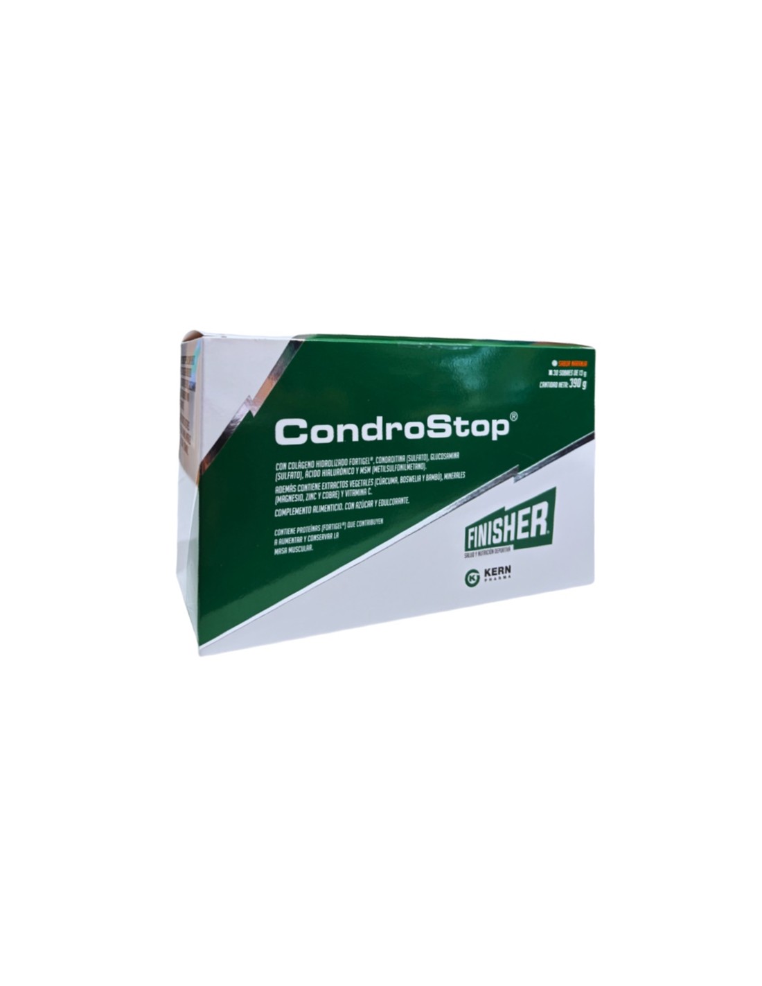 Modo empleo: toma 1 sobre (13g) al día de Finisher Condrostop. Verter el contenido en un vaso de agua con una de las principales comidas.