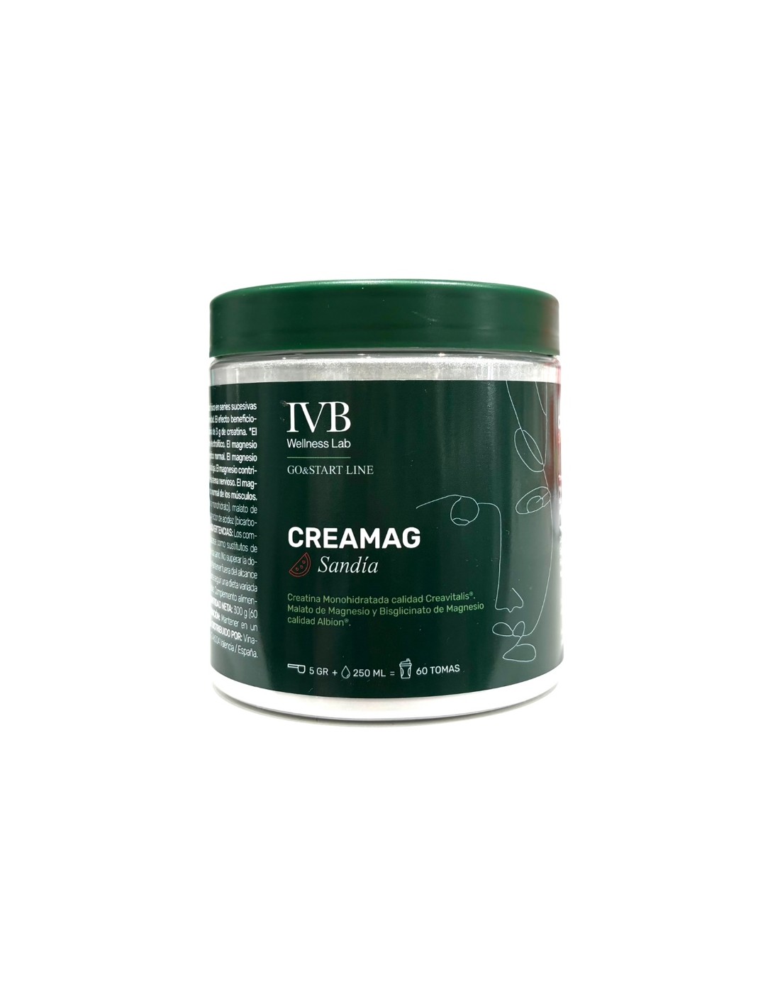Complemento nutricional con creatina monohidrato Creavitalis® -una creatina ultrafiltrada y micronizada de alta pureza-, malato de magnesio y bisglicinato de magnesio calidad Albion®.