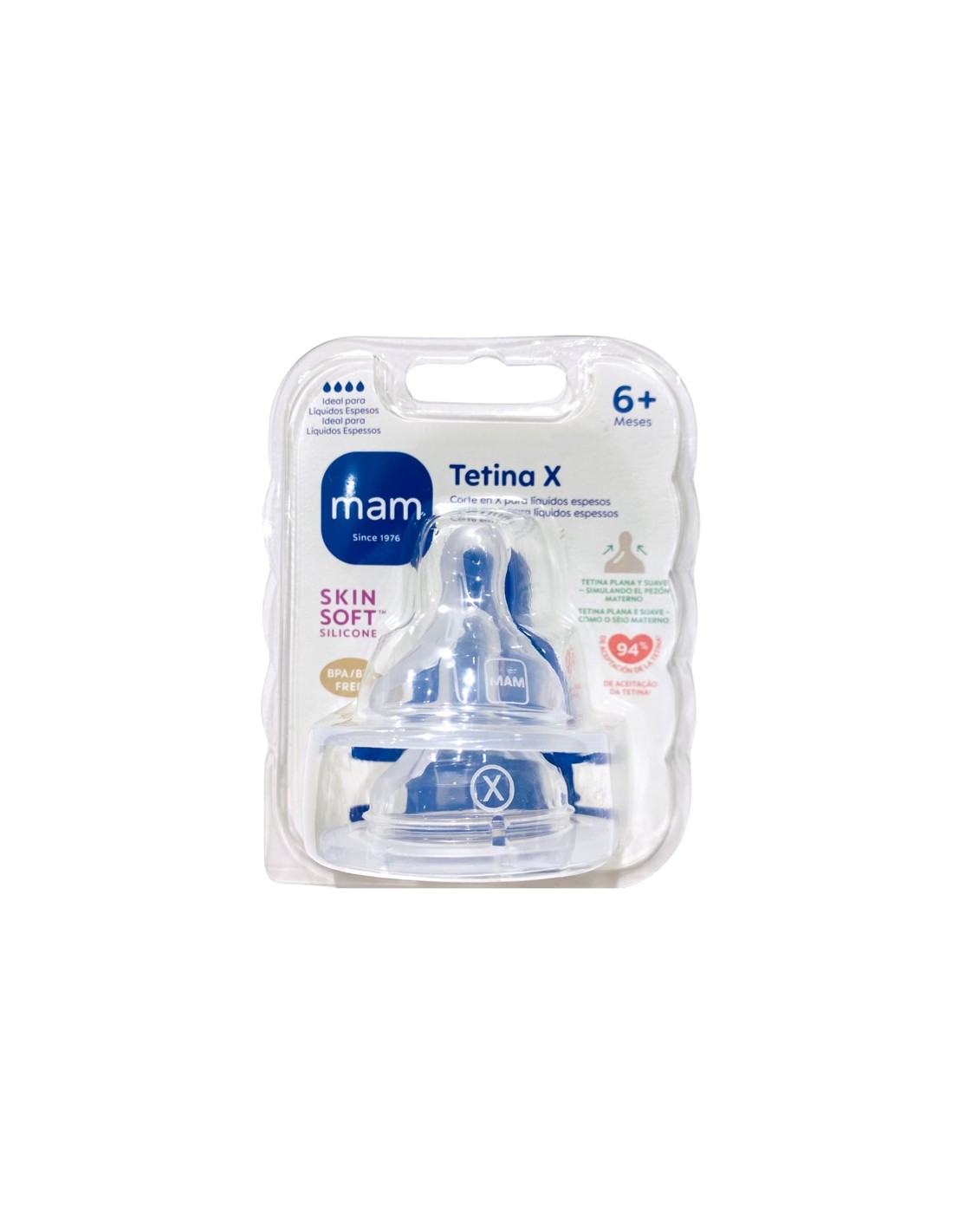 Mam tetina silicona nºx +6 meses una tetina comoda y flexible que se adapta perfectamente a la boca de nuestros bebés hay diferentes tamaños éste es el más grande, su forma es muy similar a la del pezón, es adecuada para todo tipo de líquidos.
