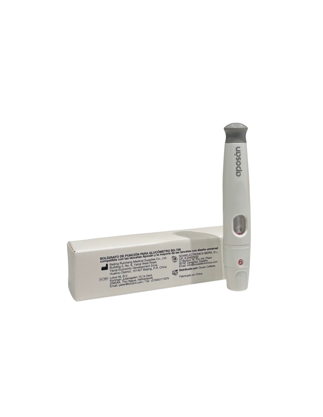Bolígrafo de Punción para Glucómetro Aposan es específico para el Glucómetro BG-709 y compatible con las lancetas Aposan y la mayoría de las lancetas con diseño universal