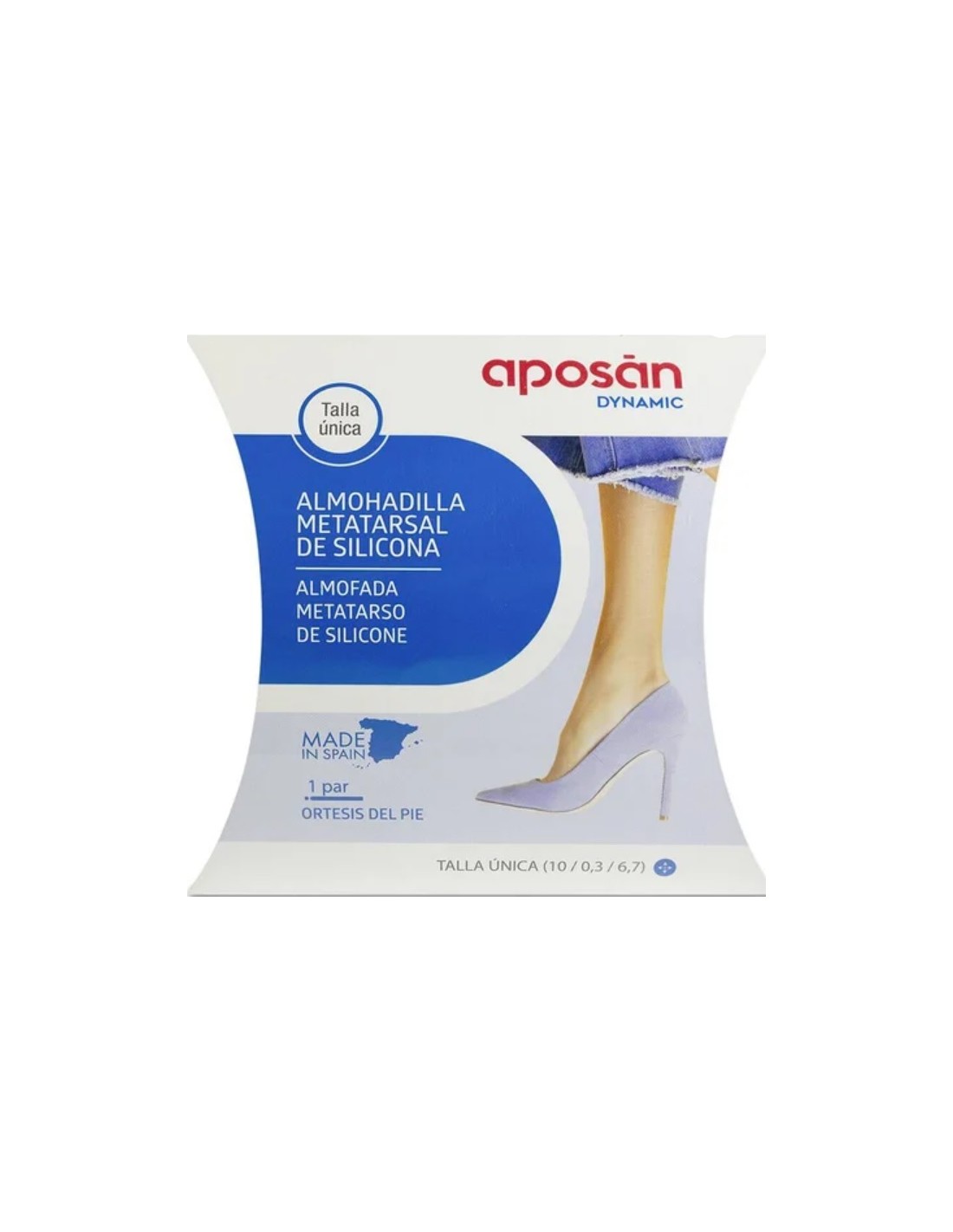Aposan Dynamic Almohadilla metatarsal T U 2u es ideal para calzado de tacón alto. Indicado en: metatarsalgia, sobrecargas metatarsales y neuromas.