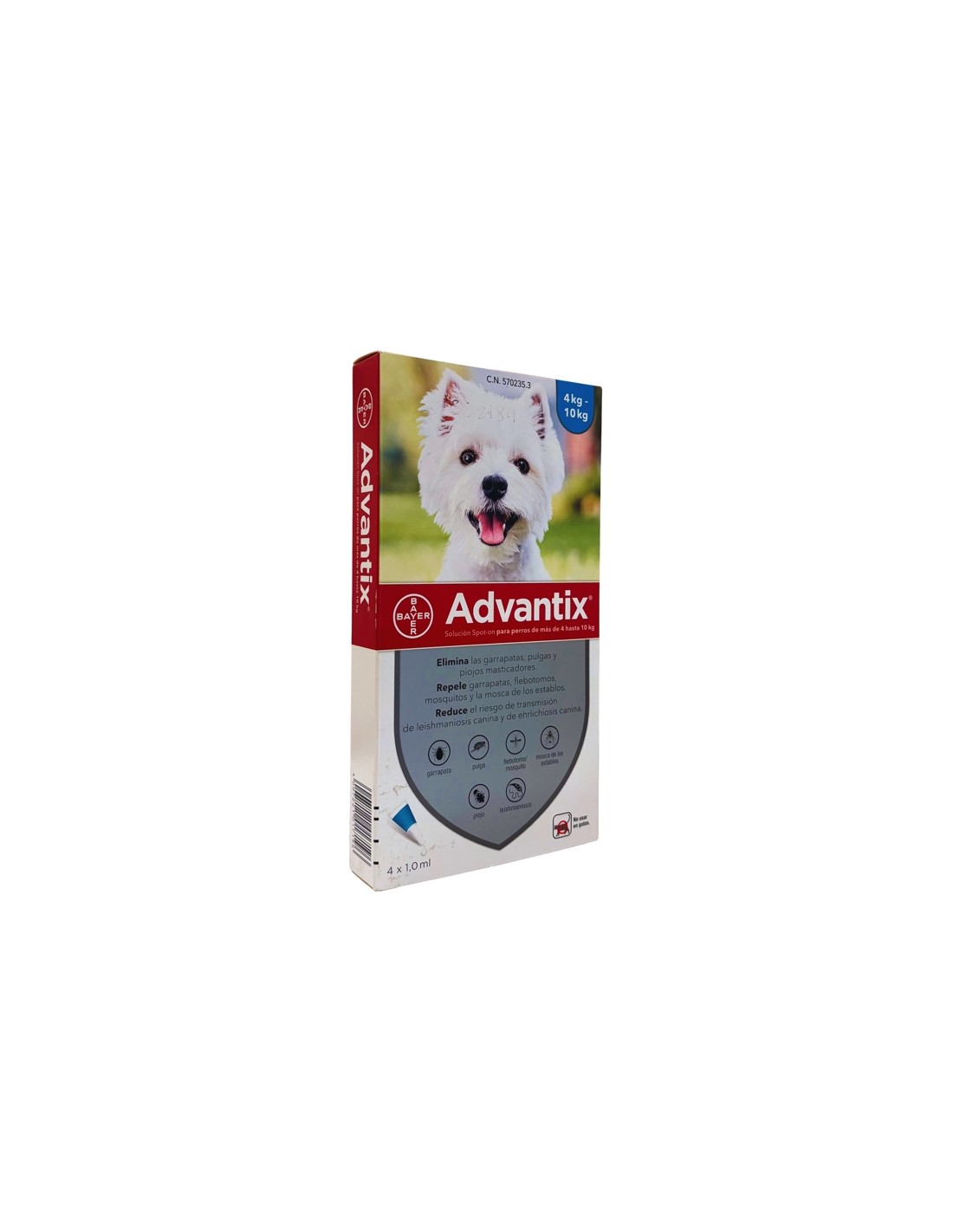 Advantix Perros 4-10 Kg 100/500 mg Spot-on 4 Pipetas 1 ml está indicadas para la prevención y tratamiento de infestaciones por pulgas.