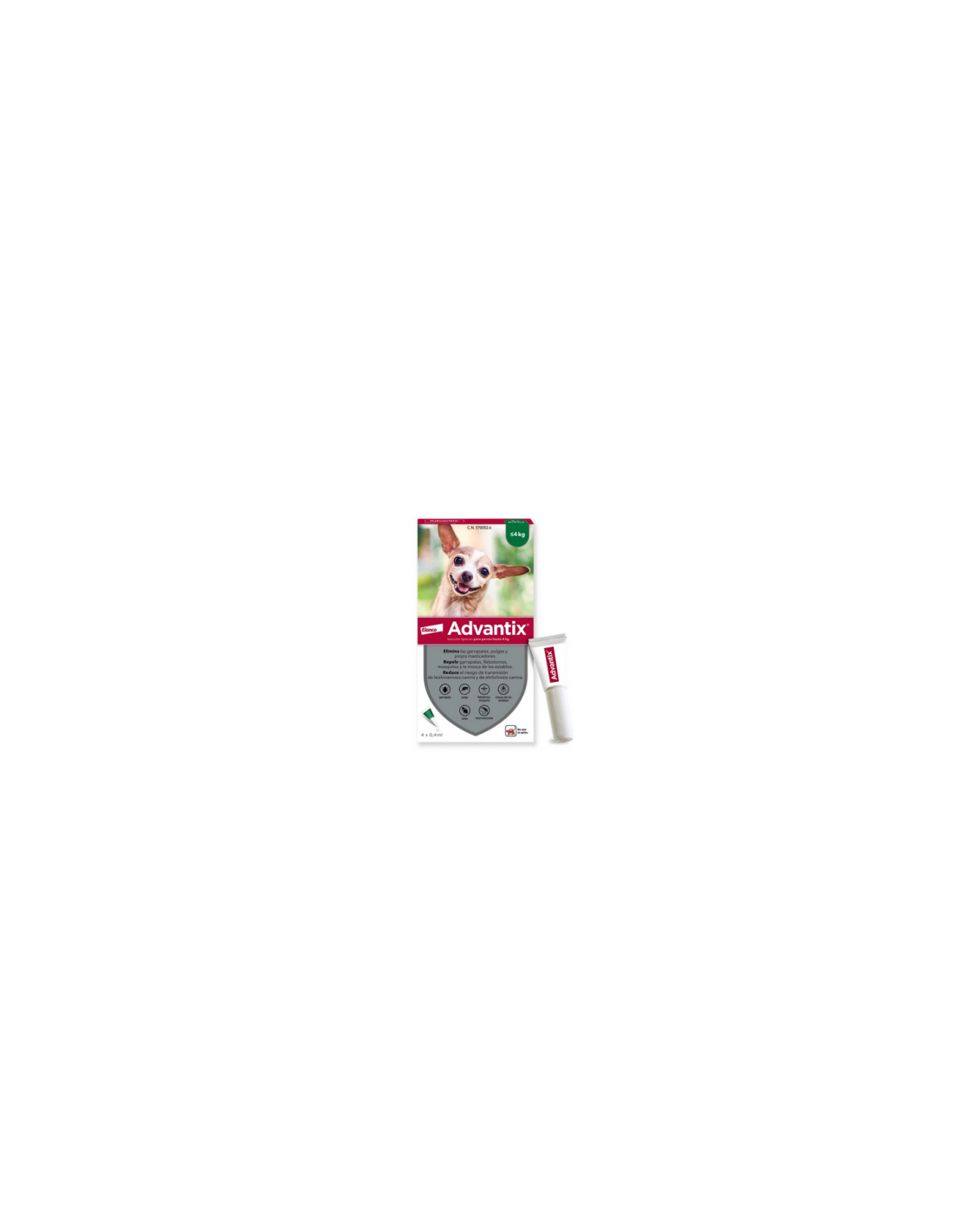 Advantix perros hasta 4 kg 40/200 mg solución spot-on 4 pipetas 0.4 ml Se aplica directamente sobre la piel del animal.