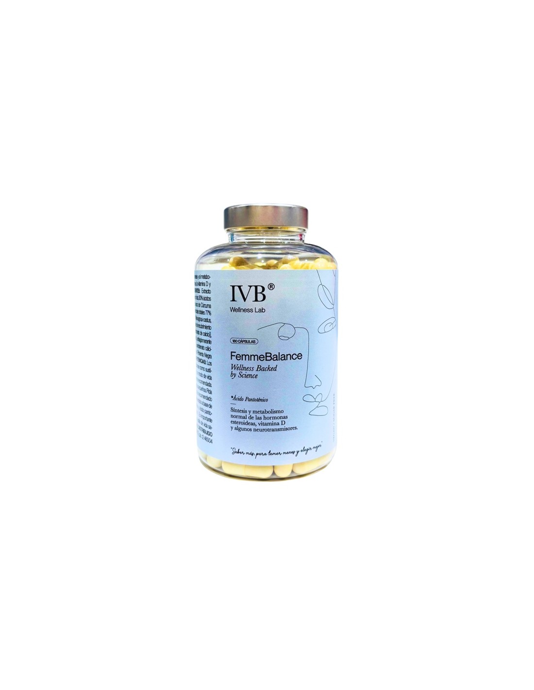IVB FemmeBalance Isabel Viña 180 cápsulas favorece el balance hormonal femenino con el fin de mejorar el síndrome premenstrual, acné o caída del cabello de perfil hormonal.