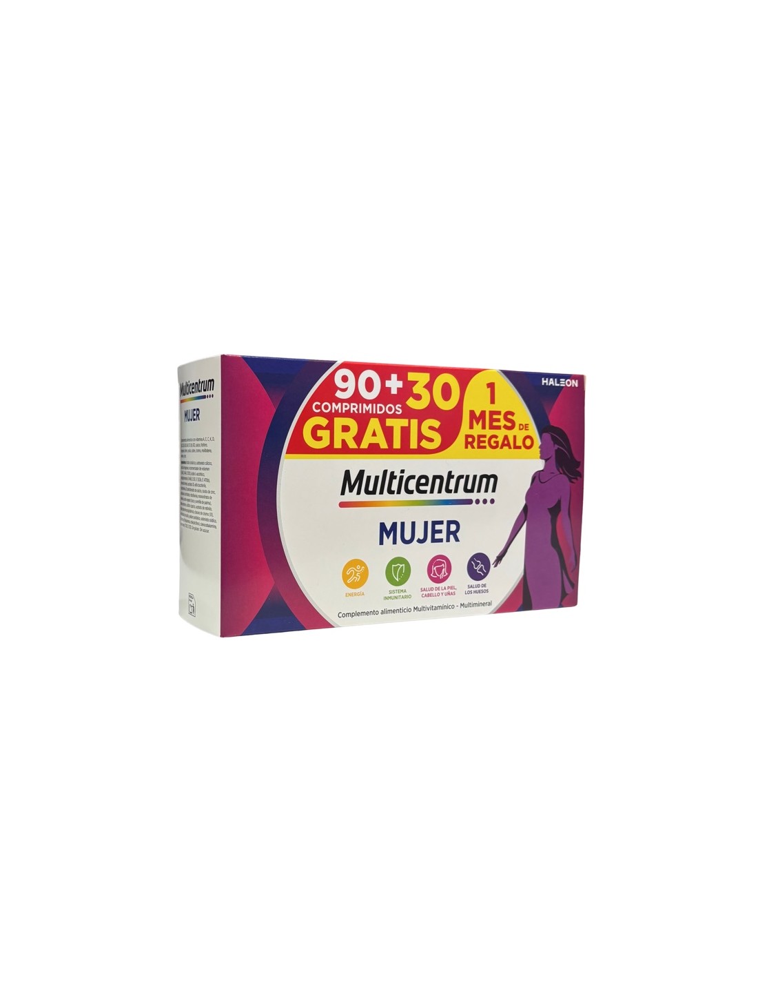 Envase promocional con 90 + 30 comprimidos de regalo.